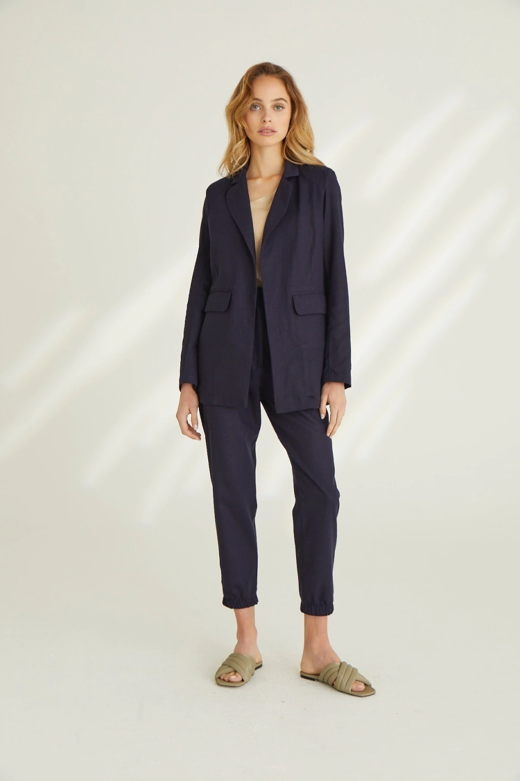 El blazer Chablis está confeccionado en lino mezcla, sin forreria, con costuras internas envivadas a tono, bolsillos externos y un botón para cerrar. Te sugerimos usarlo en conjunto con el pantalon Rodano o el Avallon.